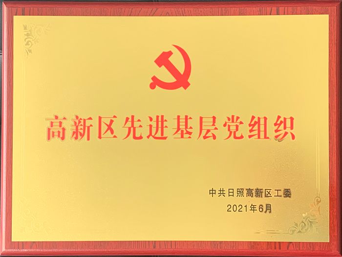 慶祝中國共產黨建黨100周年之際,日照高新區(qū)工委隆重召開“兩優(yōu)一先”表彰大會,華業(yè)玻璃黨支部被表彰為“高新區(qū)先進基層黨組織”。