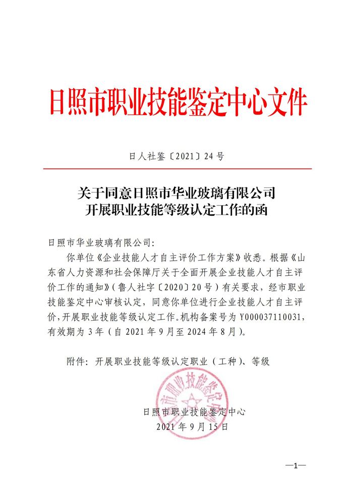2021年9月15日,經(jīng)日照市職業(yè)技能鑒定中心審核認(rèn)定,同意我公司進(jìn)行企業(yè)技能人才自主評價(jià),開展職業(yè)技能等級認(rèn)定工作。